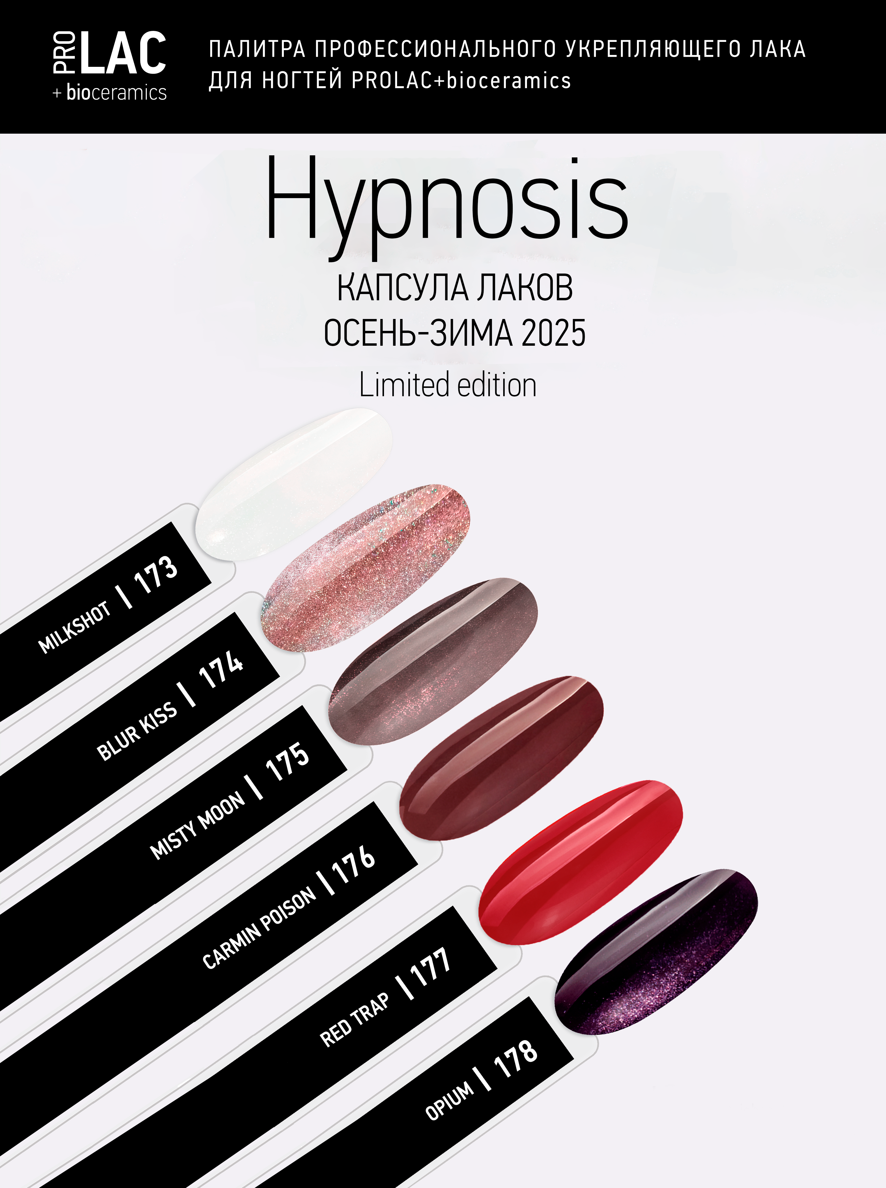 Профессиональный укрепляющий лак с биокерамикой PROLAC+bioceramics гарантирует стойкое лаковое покрытие без сколов с визуальным эффектом гель-лака до 10 дней.
