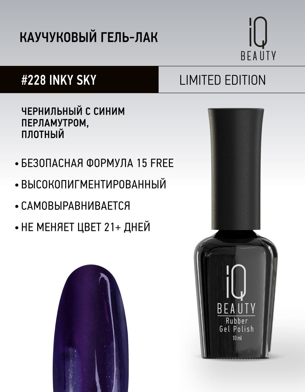 —Каучуковый гель-лак 228 Inky Sky, 10 мл